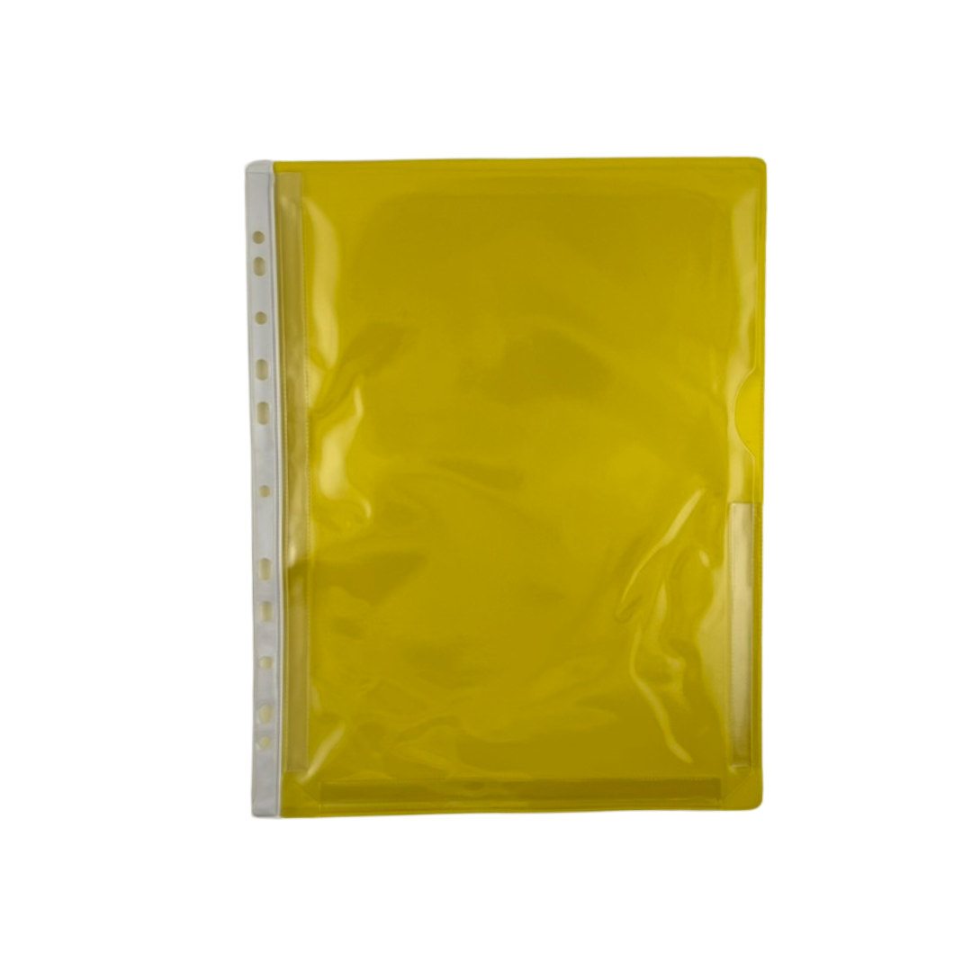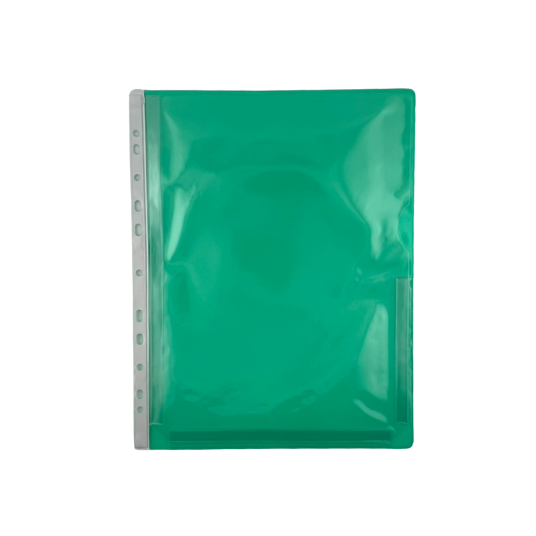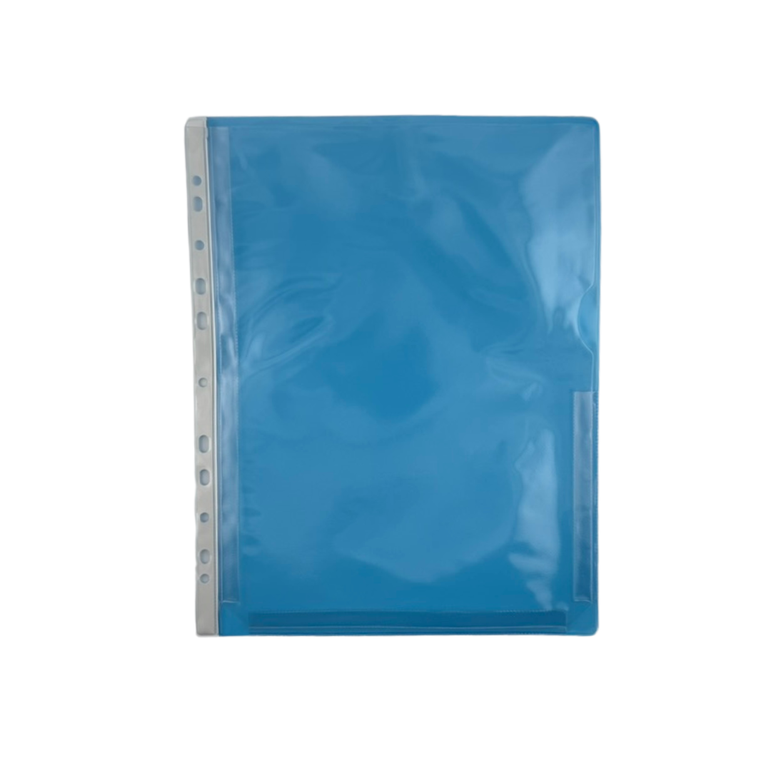 Plastficka anpassad för att förvara allt från ett A4-ark till en större bunt papper. Med hållist för att sättas i pärm, A4.