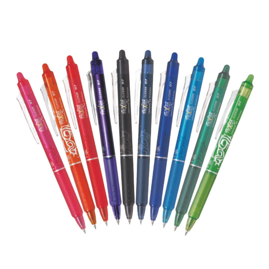 Pilot FriXion Ball Clicker Gelpenna, som har en unik raderingsspets och värmekänsligt bläck, är det lätt att radera och korrigera misstag. Denna gelpenna använder värmekänsligt bläck, som kan raderas omedelbart med FriXions särskilda raderingsspets på pennslutet. Med FriXion Ball Clicker kan du enkelt åtgärda misstag gång på gång utan att pappret blir kladdigt eller fördärvas.