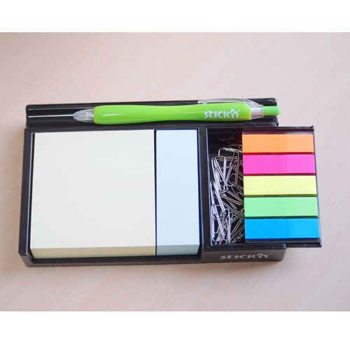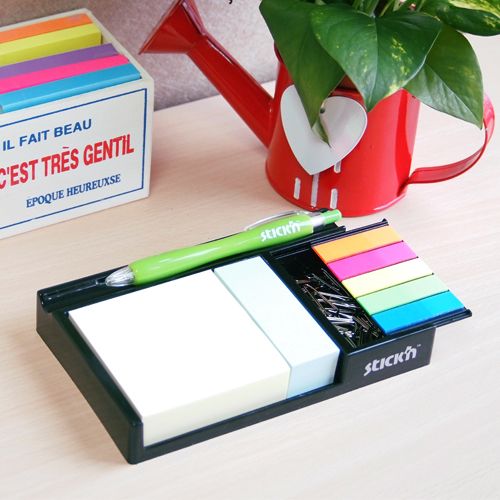 Notisblock med hållare är en praktisk lösning för att organisera en arbetsplats. Den innehåller en hållare och pastellfärgade klisterlappar i storleken 76×76 mm (3′ x 3′), med 200 ark per block. Ytterligare storlekar: 76×25 mm (200 ark) och 45×12 mm (125 ark/5 block). (Penna och gem ingår ej)